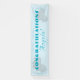 Design features a pale blue background to the images of delicate crocheted baby booties. Heading is featured in a bold ocean blue font. Name of guest-of-honor is displayed below in a more elegant font of the same ocean blue color. An elegant flourish borders design.