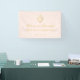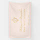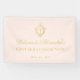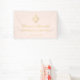 Un diseño rosa y dorado con aire vintage, para una primera comunión de chicas. El fondo es rosa. Hay un falso escudo de Relieve metalizado de oro con una cruz encima del texto. El mensaje "Bienvenidos a [Name]'s" está escrito en un guión caligráfico elegante, el resto en mayúsculas. Todo el texto es oro.