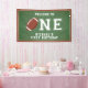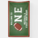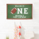 Fútbol Primer cumpleaños, cartel de bienvenida, también se puede usar para un fondo fotográfico. Celebra tu pequeño quarterback con este lindo diseño de cumpleaños de fútbol, creado con un fondo de campo de fútbol con "ONE" que tiene un fútbol en lugar de la "O". En nuestra tienda de MetroEvents on Zazzle encontrará suministros adicionales de fiesta.