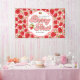Lona Primer cumpleaños del patrón de fresa blanca rosa