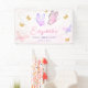 Nuestra pequeña pancarta de cumpleaños chica de oro morado rosa de mariposa.