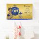Banner de la ducha de bebé del príncipe azul y oro real con hermoso carro azul y oro real y lindo principito afroamericano en un rico fondo azul y oro real. Puedes personalizar este elegante cartel de bebé de príncipe azul real y oro para tu evento simplemente agregando tus detalles en el estilo de letra de tu elección.