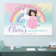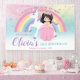 Telón de Fondo de Bienvenida para Fiesta de Cumpleaños de Princesa y Unicornio Caprichoso, con un unicornio arcoíris y una princesa encantadora. Personalízalo fácil y rápidamente, simplemente presiona el botón de personalizar para reorganizar y dar formato al estilo y ubicación del texto. Diseño exclusivo (c) The Happy Cat Studio. ¡Artículos coincidentes en la tienda!