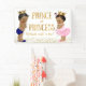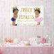 El género revela una pancarta de una ducha de bebé con adorables bebés de la etnia princesa y princesa usando coronas de oro de bonito en un fondo de purpurina de oro bonito. Puedes personalizar con el texto de tu elección, y puedes añadir un color de fondo a esta adorable pancarta de despedida de género. Este es un diseño impreso sin ningún purpurina real.