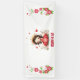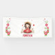 Pequeña princesa linda con vestido rojo y flores sobre fondo blanco