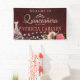 Elegante bata de la quinceanera de la princesa borgoñona o dulce banner de la fiesta de cumpleaños dieciséis con un hermoso ramo floral rosa y melocotón y un moderno guión de tipografía. +++++++++ Fácil de personalizar con tu texto!