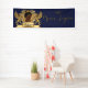 Príncipe africano Royal Baby Shower Bandera-con el príncipe africano adorable que lleva una corona del oro, descansando sobre un escudo real del león con la bandera agradable. Color de la fuente del oro en fondo del azul real.