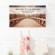 Cartel boda con una fotografía escénica. Un puente de madera que conduce a un camino rodeado de árboles que cambian de color.