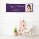 Púrpura "Feliz Cumpleaños" fiesta personalizado chicas de pancartas o mujeres de cualquier edad. Este banner se personaliza con una foto y un texto que está escrito en un elegante tipo de letra y dice, "NOMBRE de cumpleaños feliz". El color de fondo morado es personalizable a cualquier color que elija.