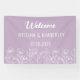 Banner moderno, elegante, floral, Boda lila morada. Perfecto para recién casados. Puedes personalizarlo con los nombres y fechas de la novia y el novio.