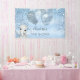 Para un Baby Shower elegante. Un fondo de aspecto metálico falso azul claro. Decorada con tonterías de purpurina, pinturas de goteo, polvo purpurina, globos de color azul y plateado y un elefante bebé. Personalice y agregue el nombre. Es perfecto como una banner de bienvenida o como decoración fiesta.