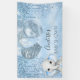 Lona purpurina azul de Baby Shower elefante niño plata