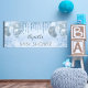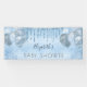 Para un Baby Shower elegante. Un fondo de aspecto metálico falso azul claro. Decorada con goteo falso de purpurina, pinturas de goteo, polvo purpurina y globos de color azul y plateado. Personalice y agregue un nombre. Es perfecto como una banner de bienvenida o como decoración fiesta.