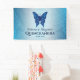 Mariposa azul marino, única y elegante con adornos de arte floral en combinación con un fondo azul purpurina y brillante adorable. Banner de moda, sencillo, elegante, original de Quinceanera Welcome fiesta.