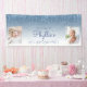 Bienvenidos a esta moda, glamurosa pancarta con fotos de la fiesta de cumpleaños número 80, con un purpurina de imitación azul brillante y un fondo azul oscuro. Reemplace fácilmente las dos imágenes de muestra con fotos del invitado de honor. Personalízalo con su nombre en escritura a mano azul, con el cumpleaños debajo en fuente sans serif azul.