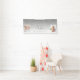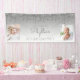 Bienvenidos a esta moda, glamurosa pancarta de fotos de la fiesta de cumpleaños número 80, con un purpurina de imitación brillante de plata y un fondo sombrío de color plata. Reemplace fácilmente las dos imágenes de muestra con fotos del invitado de honor. Personalízalo con su nombre en escritura a mano gris, con el cumpleaños debajo en letra sans serif.