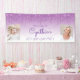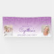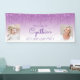 Bienvenidos a esta moda, glamorosa pancarta de fotos de la fiesta de cumpleaños número 60, con un purpurina falso y brillante color morado y un fondo oscuro. Reemplace fácilmente las dos imágenes de muestra con fotos del invitado de honor. Personalízalo con su nombre en escritura a mano morada, con el cumpleaños debajo en letra sans serif.