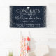 ¡Felicitaciones al graduado! Banner de purpurina azul marino y falso plateado con texto elegante que dice - CONGRATOS, al graduado, su nombre, año de clase y la orgullosa cita '¡LO HICISTE!'. Perfecto para mostrar en su casa o en una fiesta de graduación.