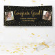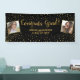 Celebra el gran día de tu graduación con este banner festivo con 2 fotos rodeadas por un falso purpurina de oro ambientado contra un fondo negro. Personalice fácilmente el texto de su personalizado.