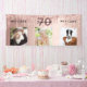 Por un cumpleaños número 70 (o cualquier edad) como un banner de bienvenida fiesta o decoración en las paredes. Un collage de 3 de tus fotos de ella misma amigos, familia, mascotas o intereses. Personaliza y agrega su nombre, edad 70 y fecha. Fecha de nacimiento o fecha de la fiesta de cumpleaños. Un oro rosa y un Relieve metalizado metalizado de imitación rosa oscuro con aspecto de fondo. Decorada con rosas de purpurina de imitación dorada, con pinturas que gotean. Oro rosa oscuro y texto de color negro.