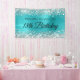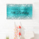 Banner de bienvenida de 18º cumpleaños del Relieve metalizado de estilo metalizado color azul turquesa y purpurina plateado falso. Una moderna y elegante caligrafía con un moderno estilo de letra todo tipo de mayúsculas en negro. Crea tu propio signo de bienvenida de celebración de cumpleaños para tu amigo. El fondo cuenta con un purpurina llamativo falso y gráficos de arte digital de Relieve metalizado metálico que se imprimen como una foto.