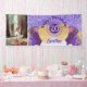 Cartel festivo con Purpurina púrpura, globos Fiestas y foto para ella.