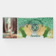 Cartel festivo con Purpurina verde, globos Fiestas y foto para ella.