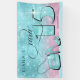 Celebra tu evento de Quinceanera con estilo con este banner horizontal con una fuente decorativa única en un estilo retro moderno, un llamativo fondo de gradiente de brillantes acentos verde azulados a través de accesorios de moda rosa y moda. El llamativo texto "Quince" de Cara (queridos o quince) en un brillante efecto purpurina verde azulado es opcional y se puede borrar para usar la plantilla en otras ocasiones. Utilice la plantilla proporcionada para agregar el nombre y la fecha de nacimiento de una celebridad. Busque ID701 para ver otros productos y opciones de color para este diseño.