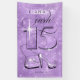 Celebra tu evento de Quinceanera con estilo con este banner con una fuente decorativa única en un estilo retro a la moda, un llamativo fondo de brillantes acentos violeta y accesorios de moda de moda. El impactante texto de Cara 'Quince' (queridos o preciados quince) en un brillante efecto purpurina violeta es opcional y se puede borrar para usar la plantilla en otras ocasiones. Utilice la plantilla proporcionada para agregar el nombre y la fecha de nacimiento de una celebridad. Busque ID701 para ver otros productos y opciones de color para este diseño.