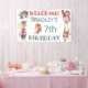 Lanza a tu pequeño hincha de deportes una fiesta de cumpleaños con tema de béisbol e invita a amigos y familiares con esta bonita pancarta de bienvenida de béisbol, fiesta de cumpleaños para niños o chicas. Esta pancarta de cumpleaños de béisbol incluye lindos animales ilustrados; un conejito, un gato, una pereza, un perro y una llama. Personaliza con el nombre de tu hijo y la información del año de tu cumpleaños.
