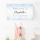 Cartel de bienvenida para una fiesta de cumpleaños número 15 de una chica y glamurosa. Un fondo blanco decorado con un polvo purpurina azul claro y azul cielo. Personalice y agregue un nombre y una edad. Cartas negras.