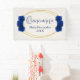Elegante Quinceanera floral con rosas de azul real, marco geométrico dorado y fondo de marfil champán