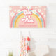 ¡Seis es un Vibe! Banner inspirado en el retro para el sexto cumpleaños con fuentes y colores de estilo 70, arcoiris y margaritas en rosa