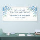 Añada este Banner de recepción de las ramas azul a sus accesorios Bodas. Creado en tonos suaves de color azul acuático, con toques de verde pálido, este Banner es fácil de personalizar con los primeros nombres y fecha Boda de Bride & Groom, usando nuestra plantilla sencilla. No deje de ver el conjunto de accesorios de recepción de boda y colección de estacionería de las marcas Blue Willow Branches. ¡Disfrútalo!