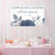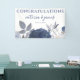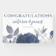 Pancarta de Boda floral gris azul veraniego para sus accesorios de recepción. Diseñado con flores acuáticas en tonos azules y grises suaves, sobre un fondo blanco. El texto incluye: ¡FELICITACIONES!, Los nombres de la novia y de Groom y la fecha de Boda. Para personalizar, simplemente inserte sus detalles en nuestra plantilla sencilla, reemplazando el texto de ejemplo. No olvide ver toda la colección de Bodas florales grises azules de verano para tarjetas y accesorios a juego.