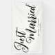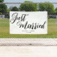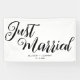 El moderno Banner de la recepción de boda es un sencillo banner negro y blanco para tu fiesta de la recepción nupcial. Este elegante diseño "Just Married" es un divertido complemento al coche de escape de la pareja. La decoración boda se completa con tulipanes florales y copas de champán. Personalizar con el nombre de la novia y del novio y la fecha boda de la fiesta nupcial.