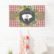 Diseño de gingham roja con burlap con diseño geométrico de pizarra con silueta de cerdo rodeado de flores silvestres de ojos negros y vegetación. Personalice el texto.