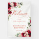 Welcome guests to your birthday party with this elegant floral design. Two lush red and white floral arrangements are placed in diagonal corners. Welcome is written in a large trending font. The remainder of the text is a classic upright font and very easy to customize. This item is part of the Red Rose and Pink Peony collection. It contains professionally designed templates for designing your invitation suite, welcome signs and party supplies.