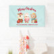 Pancarta de navidades con un lindo ilustracion con un conejito, un oso y un ciervo todos vestidos con ropa de fiesta. Adorable y caprichoso.