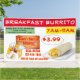 Puse mucho detalle en este colorido cartel de burrito de desayuno Personalizar mexicano. Lo crearé en tamaños más pequeños y tal vez también en algunas ventanas.