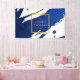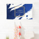 Coordina con la plantilla de tarjeta de visita Resumen de pinceles azules índigo para 1201AM. Las pinceladas de pintura azul índigo crean un fondo abstracto en este cartel personalizado. Su nombre o nombre de negocio aparece en una caja de oro falsa para una estética moderna. © 1201AM Design Studio