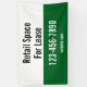 This banner is forest green, black, and white. You can edit the text to meet your needs. You can edit the text at the top to show your custom text (shown: Retail Space For Lease) The top half is white with black text. The bottom half is forest green with white text for the company's phone number and email address.