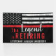 Este diseño cuenta con una bandera de los bomberos con rayas blancas y negras y una delgada franja de línea roja. El texto de "La leyenda es agotadora" se sienta por encima del nombre del bombero, teniente o jefe que se retira. ¡Celebren con estilo!