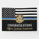 Este diseño incluye una bandera de la fuerza policial con rayas blancas y negras, y una delgada franja azul. Personalizar con el nombre del oficial de policía, sheriff, capitán o jefe que se retira o se gradúa. Una gran manera de felicitar al nuevo jubilado o graduado por su retiro o graduación de la academia de policía.