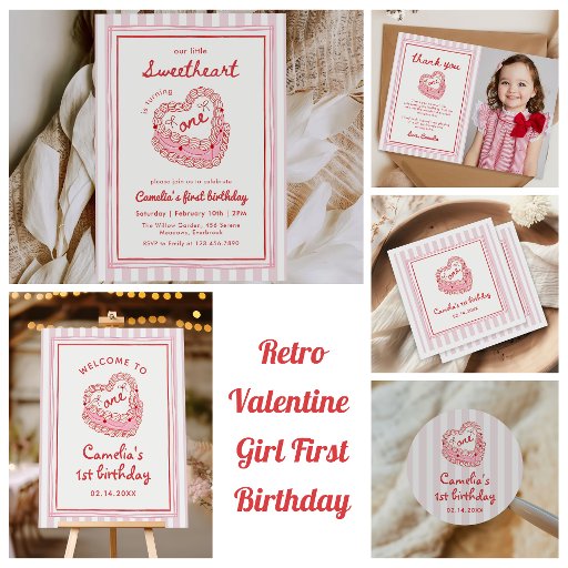 Lona Retro Hand Drawn Valentine Girl First Birthday