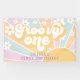 Pastel Retro Sunshine Groovy Una pancarta de fiesta de primer cumpleaños con maricas de boho.
