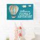 Enfrentémoslo todos los días es una aventura, así que ¿por qué no reunirse con sus parientes y tener una aventura familiar? La colorida acuarela cuenta con un globo de aire caliente listo para una aventura familiar de Reunión. Monograma con el nombre de su familia. Muestra tu propia pancarta de Reunión Familiar en el parque, la playa o la barbacoa del patio trasero.