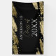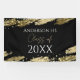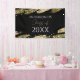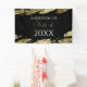 Diseño elegante con salpicaduras de pintura de lámina dorada falsa. Todo el texto es ajustable y fácil de cambiar según las necesidades de su fiesta. Letrero de bienvenida negro y dorado, reunión de clase, letra cursiva, elegante, cualquier año, plantilla de fiesta.