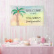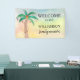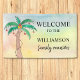 Este cartel de reunión familiar está decorado con una palmera sobre un fondo acuático. Personalizable fácil. Acuarela original © Michele Davies.