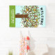 Cartel de bienvenida de la reunión familiar con un árbol lleno de divertidos pájaros personalizados creativos. Para personalizar el texto de edición para agregar el nombre de la familia.